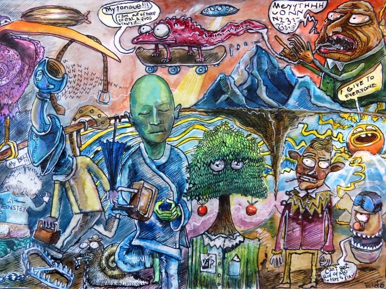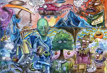 an exchange of emotional vessels kept under siege by a chemically modulated brain creature shooting Plaza from his cross-eyed stare and the monstrous fire-breathing bird of rejection... all this was just a decoy to steal golden eggs of time, space and self-worth.